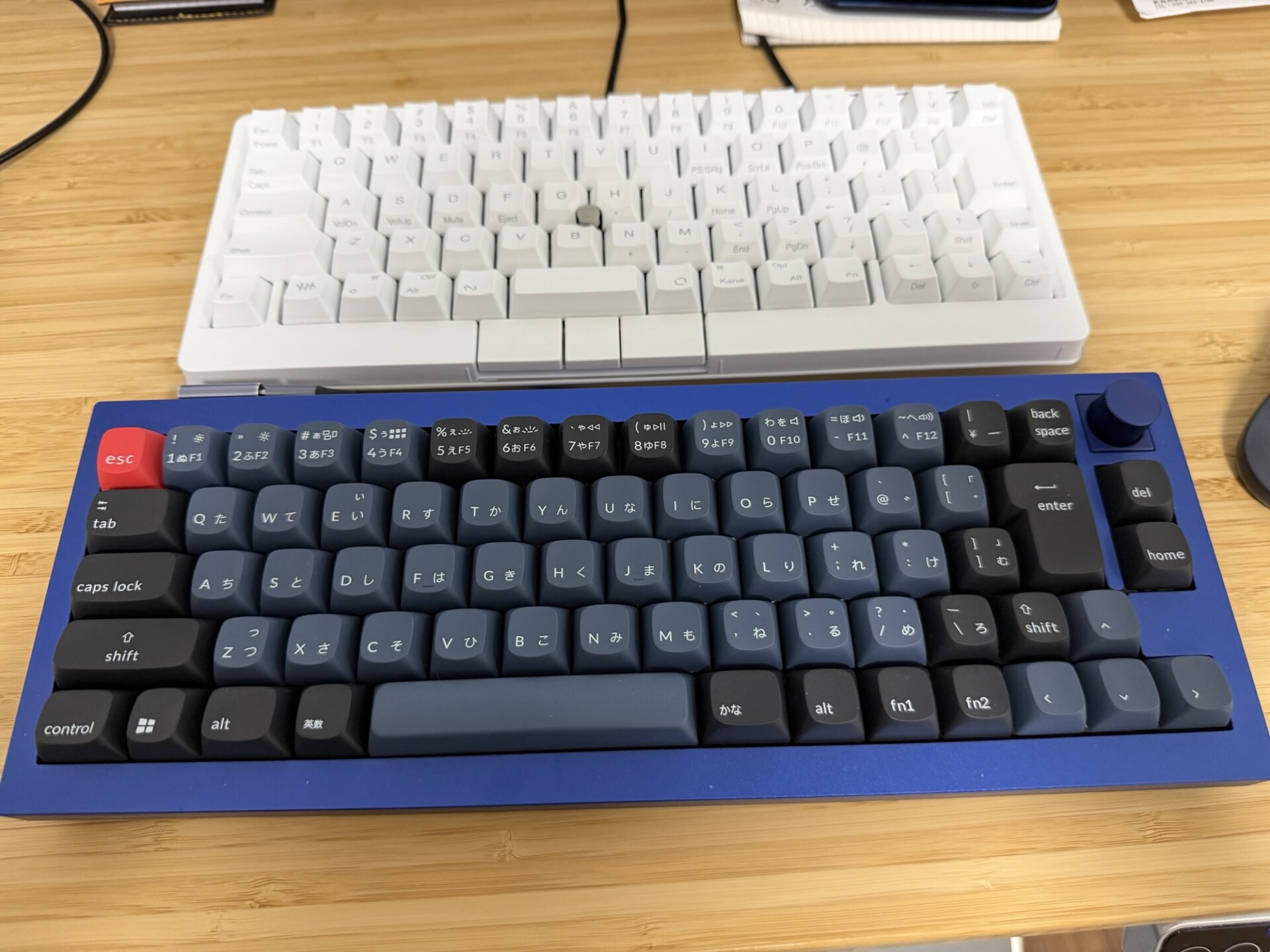 分割キーボードそのものは良かったのですが、いかんせん日本語配列だと自分が好みのキー配列の製品が現行品で存在しないのがネックでした。ここで使っていたMistel BAROCCO MD600というキーボードは動作が不安定で、キーカスタマイズが必須なのに暴走して定期的に再設定が必要でした。