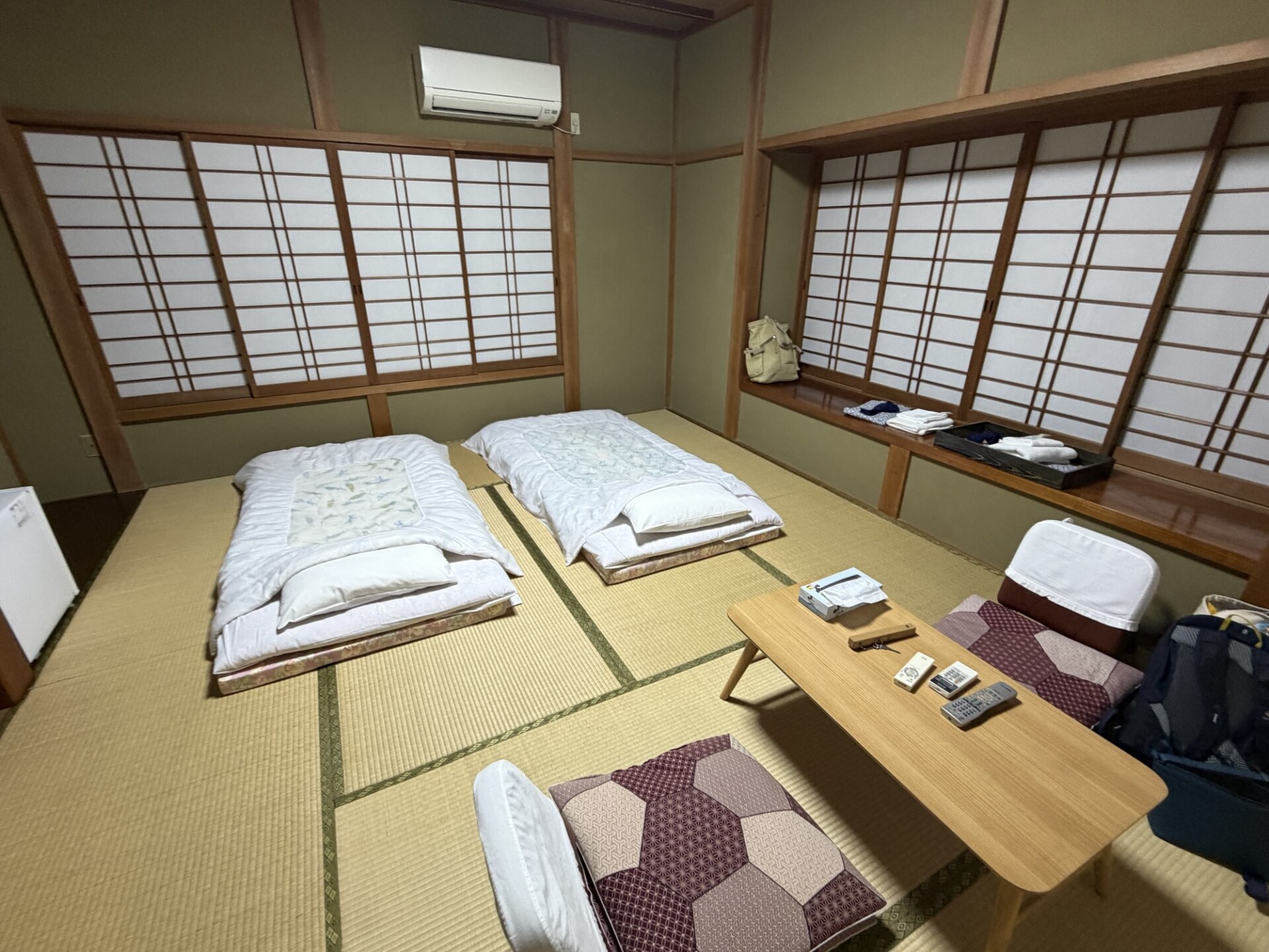 部屋は広くて静かですし、WiFiや冷蔵庫などもちゃんとありますし、トイレも部屋に綺麗で広いものが備わってました。お風呂は共同ですが、他の宿泊者とかち合わないように利用すれば、二人で入るぐらいなら十分な広さです。冷えた体をお風呂で温めたのですが、やはり今日の富士SWのスタンドは寒かったようで、暖まっても鼻水が止まりません。