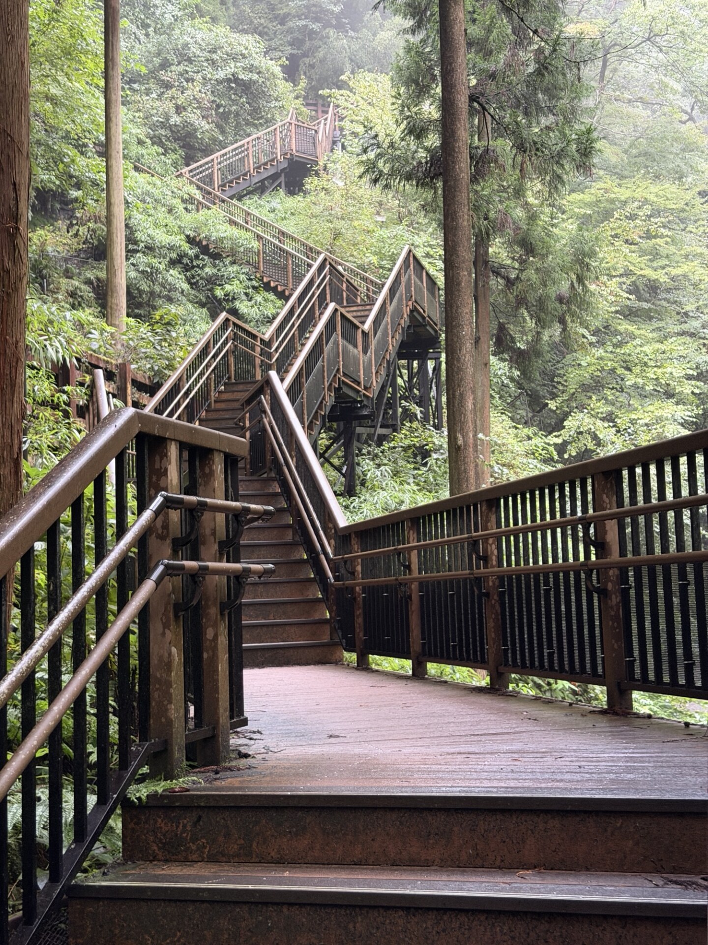 少し手前から220段ほどの展望台への階段が設置されていまして、これを登って展望台まで上がることが出来ます。高所恐怖症ではない私が怖く感じるくらいの高さでして、登って少し眺めただけでお腹いっぱい。手を滑らせてスマホを落としたら絶対回収できないので、展望台で写真を撮るのも怖かったです。
