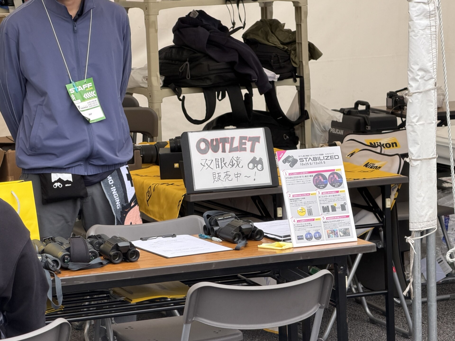 イベントステージの写真撮影トークショウで「ニコンブースで双眼鏡とカメラレンズが借りられます。双眼鏡はアウトレット販売もしてますが、好評で残りは1~2台だけだそうです」とMCの方が告知してました。多分、最後のHGモデルは簡単には売れないと思うので、実質最後の1台を買ったのは私です、と思いながらトークショウを聴いてました。
