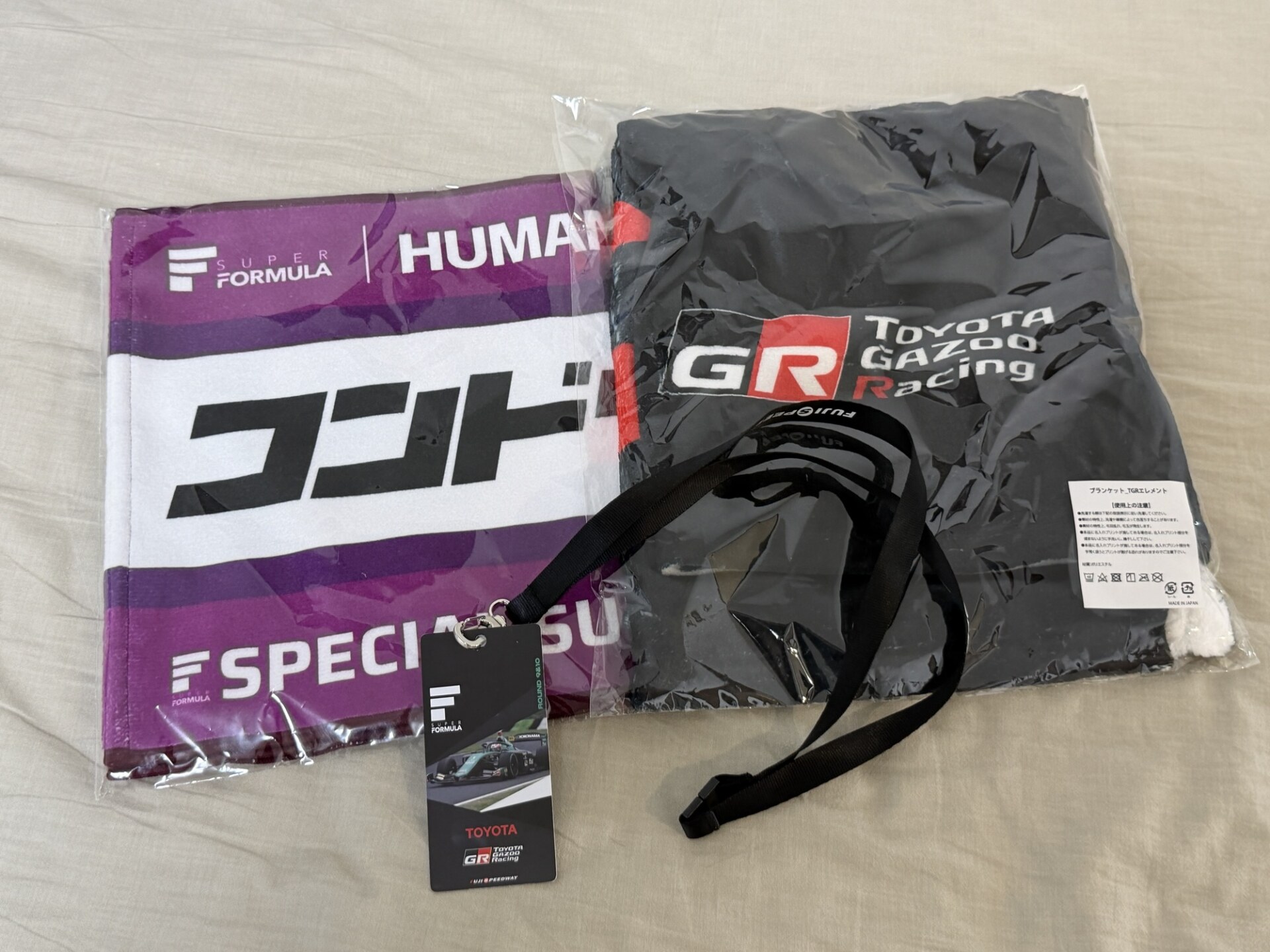 今回は近藤みやび様のタオルを購入したり、そしてYUKI氏が手配したチケットの特典としてトヨタのGRレーシングのタオルを貰ったりしました。タオルは使い道が多いのでありがたいです。レースは中止でしたが、個人的にはよい息抜きになりましたし、ニコンの双眼鏡が安く買えただけで満足してます。