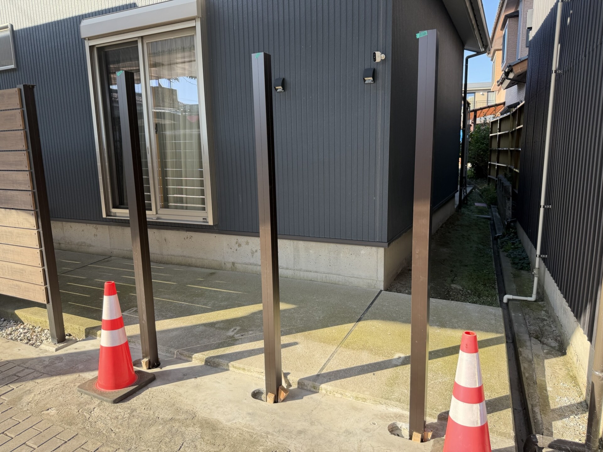 6年前に立てて貰った塀なのですが、同じメーカーの部材が手に入るということで、そのまま延長してもらいました。1日で柱を立てて、1日あいだを空けてコンクリを硬化させ、残りは半日で板を取り付けて完了です。