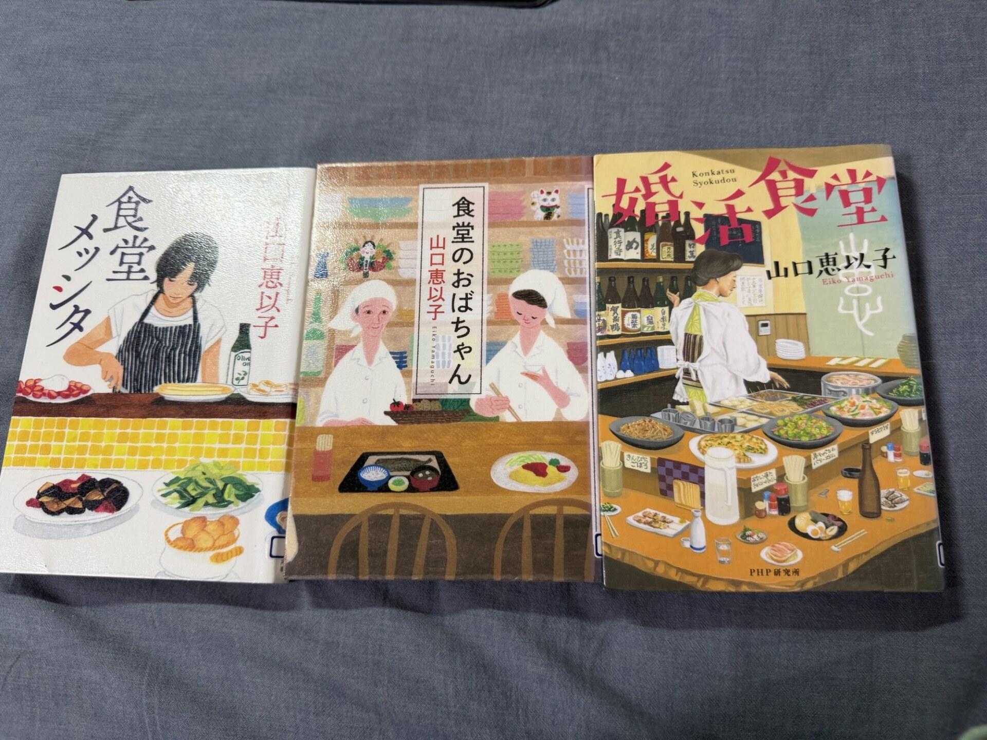 「食堂のおばちゃん」は先週の土日で読んで、その後に「宙の復讐者」を5日以上掛かって読み、「食堂メッシタ」と「婚活食堂」を今週末に読み終えました。どの作品も200~250ページぐらいで1ページあたりの文字数も少なかったので、1冊を2時間ほどで読み終えました。