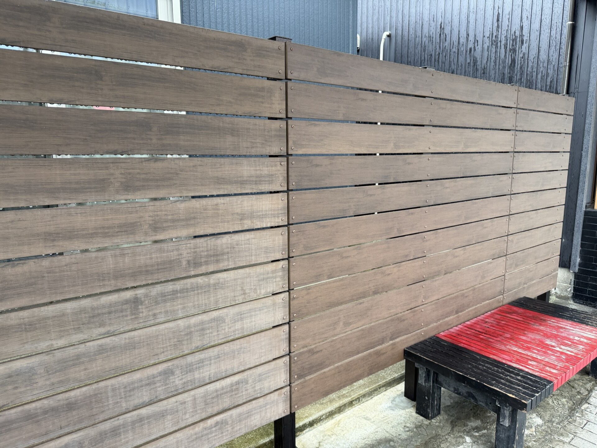 ちょっと色味が異なりますが、数年すれば分からなくなるでしょう。人工木なので、真夏になると反りがでます。ウチはまだ上にアーケードがあるので直射日光が遮られることもあって、マシな方だと業者さんは言ってました。