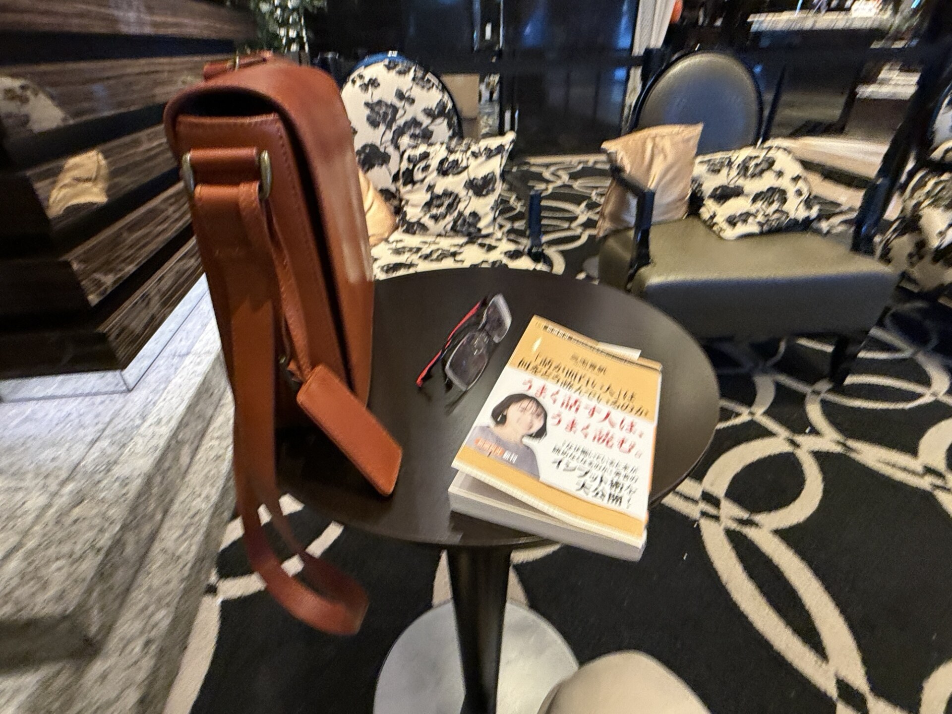 今回はホテルの滞在中に積読している本を消化するぞ~、と沢山の本を持ってきました。16時にロビーで待ち合わせだったので、待っている時間に自分で購入した新書を読みふけります。