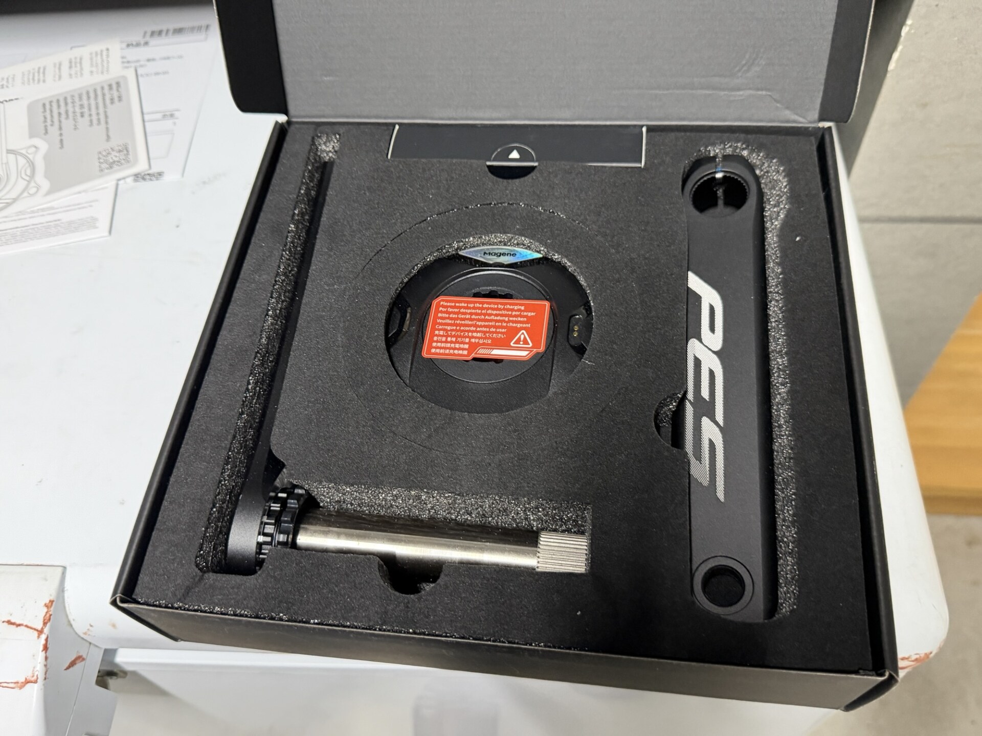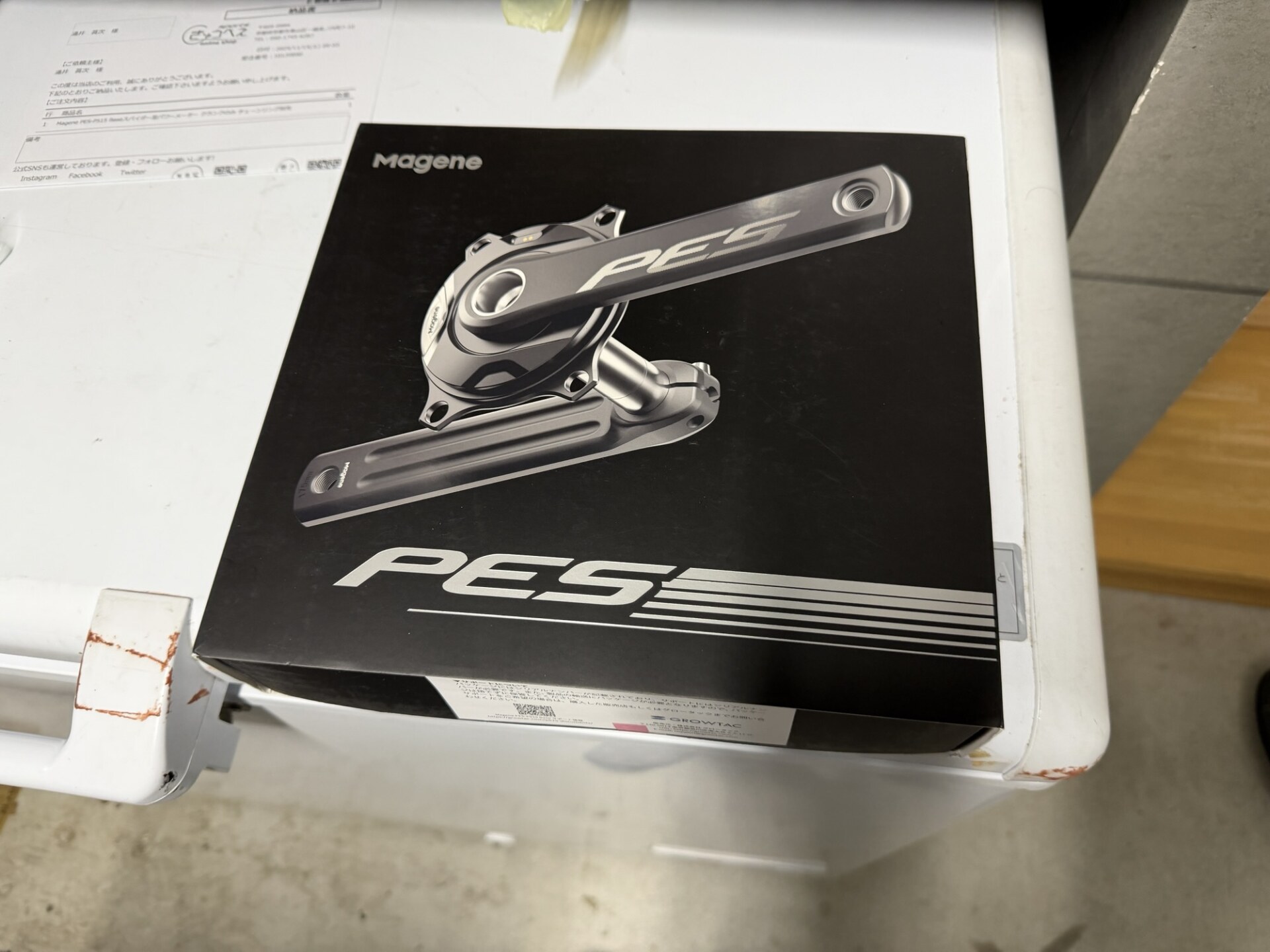 今回はSTAGESの片側パワーメーターを取り外し、スパイダー型のパワーメーターを取り付けます。リプレースする製品は、グロータック社が代理店で輸入しているMagene社のPES P-515です。