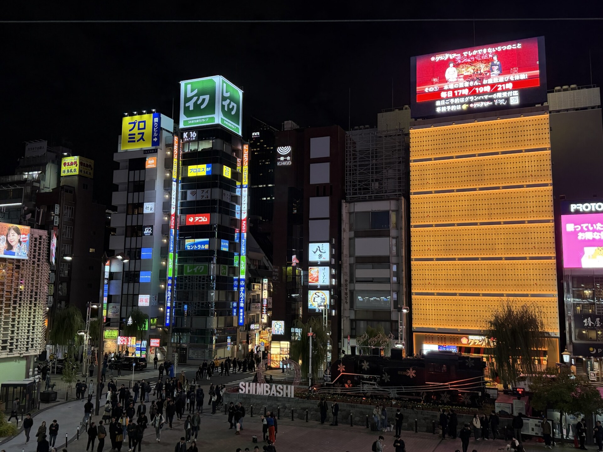 金曜日の夜でしたので、新橋は賑わっていました。ダウンコートなど厚手の冬服を着ている人が多かったですが、新潟と比較したら東京の冷え込みは緩いです。自分はシャツの上に厚手のニットコートで外出して、新潟では寒かったのですが、東京ではちょうどよかったです。