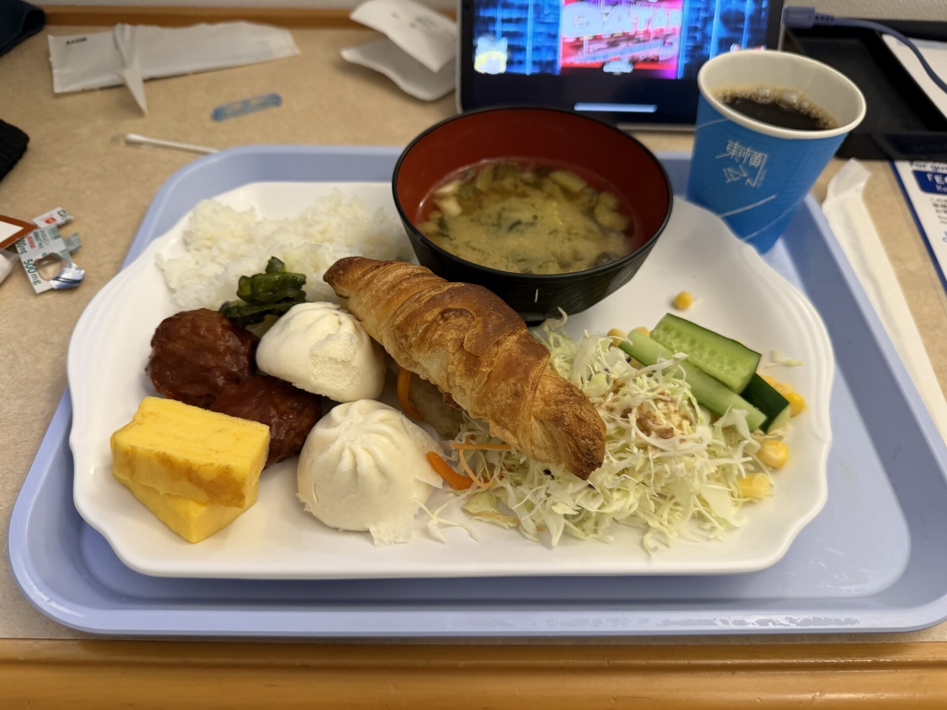 東横インはホテルによって無料朝食の内容が異なりますが、池袋北口1はご飯やパンが並んだビュッフェ形式です。品数は少ないですが、どうせ朝はあまり食べないのでこれで十分です。東横インのサービスで自分が気に入っているのが、朝食を部屋に持っていって食べてもOKなところです。朝食会場スペースの混雑対策だと思いますが、他のホテルチェーンでは見かけないサービスです。