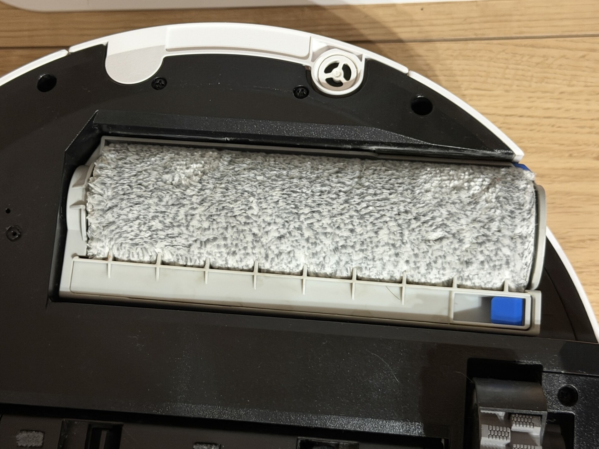 このローラーによるモップ掛けは、これまで使っていた N8+ とはレベルが違います。これまでフローリングに残っていた細かな汚れも落ちるようになり、床が綺麗に光って見えるようになりました。しかも、掃除後はモップが温風乾燥されるので、ここにカビが生えることもありません。1 回使っただけで、「なんて運用が楽なんだ!」と感心してしまいました。