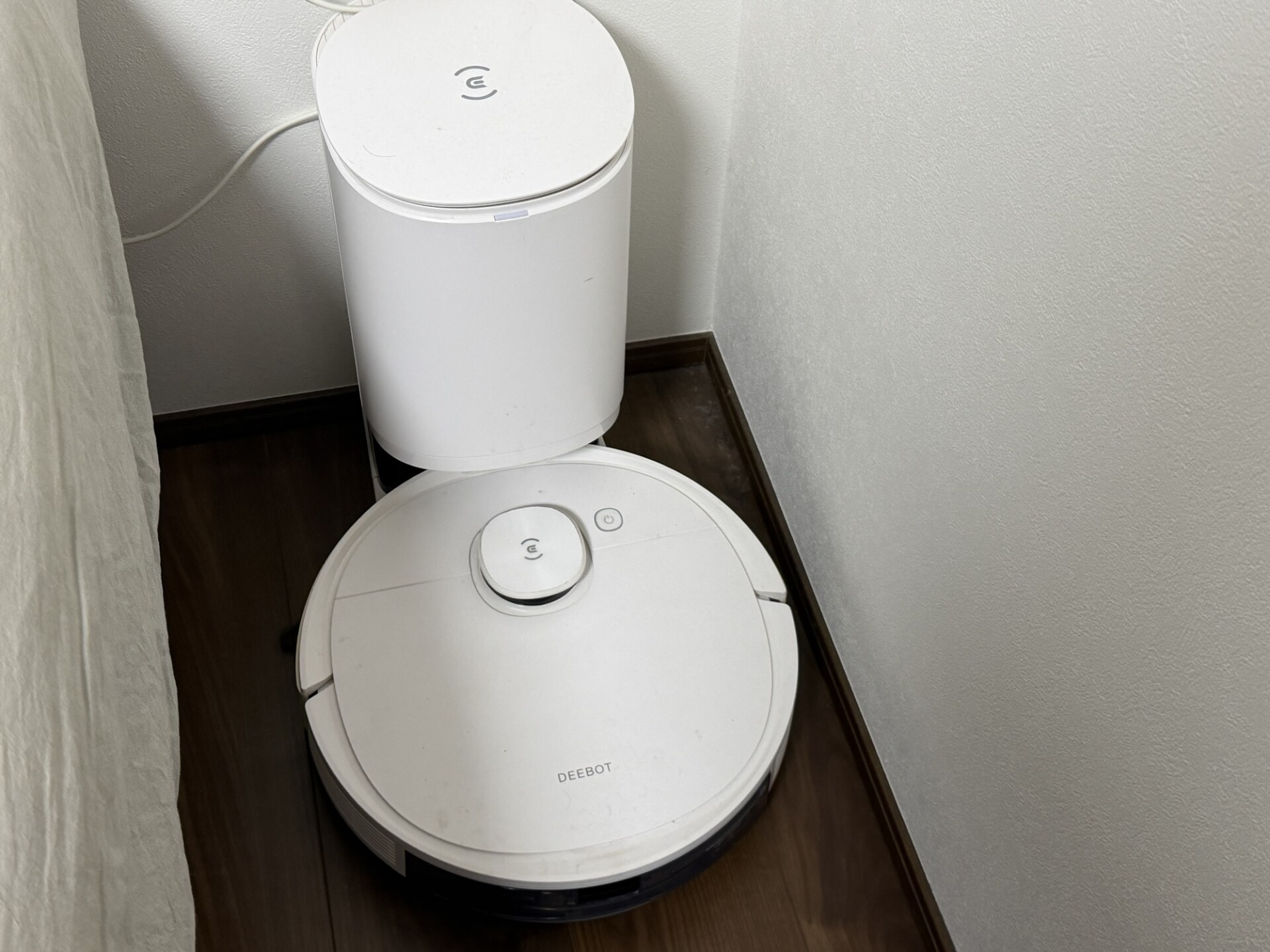 これまで使っていたのは同じ DEEBOT の N8+ という機種で、2022 年 4 月に 56,000 円で購入しています。カメラ内蔵で部屋の形を認識して掃除してくれる機種で、自動ゴミ収集機能と、モッププレートを取り付けることで濡らしたモップでフローリングを撫でるようにモップ掛けしてくれる機能があります。