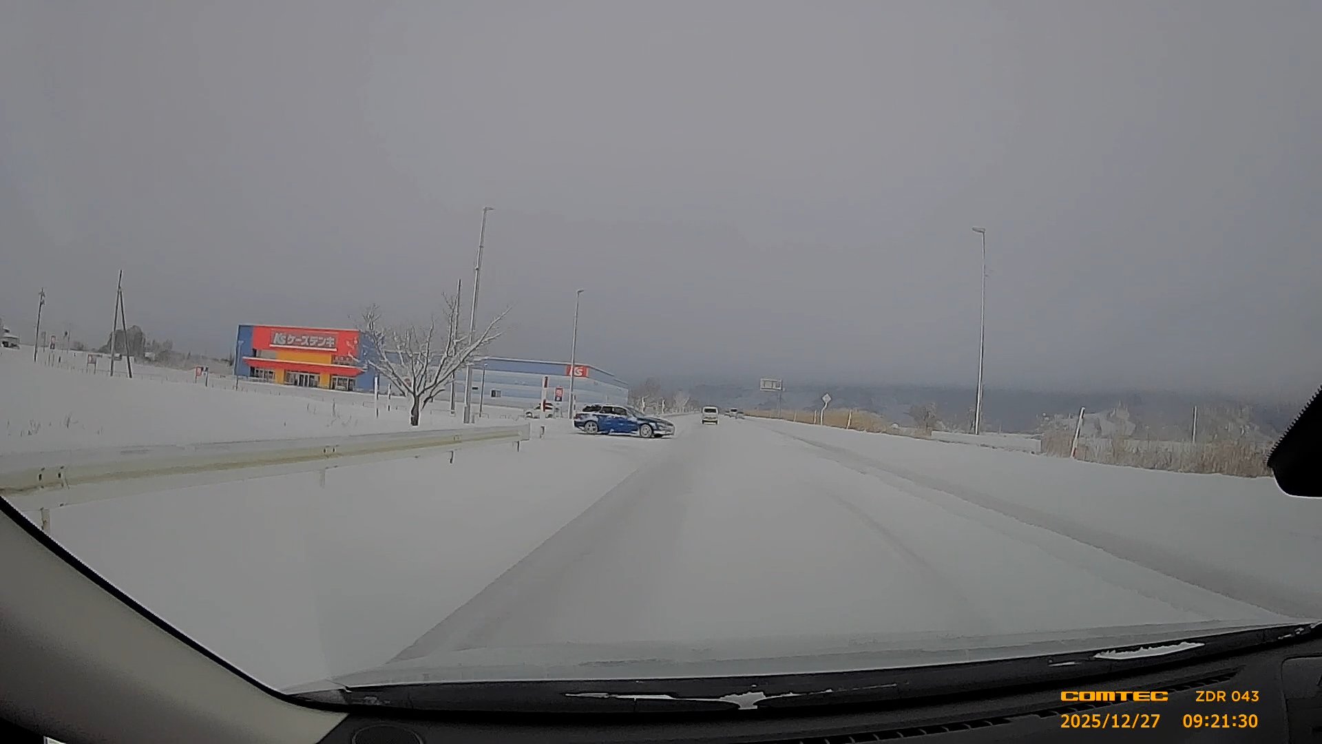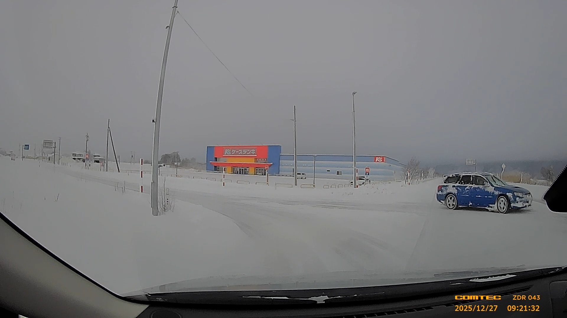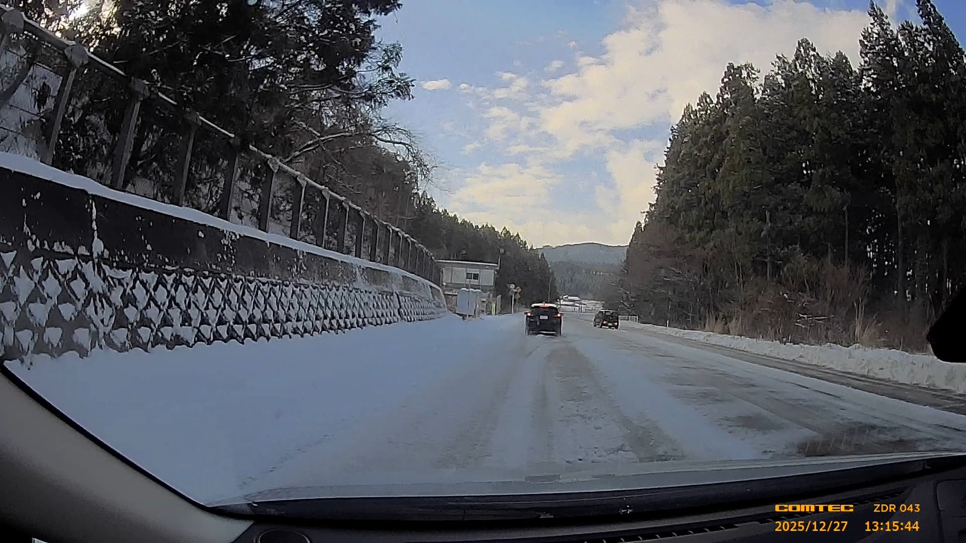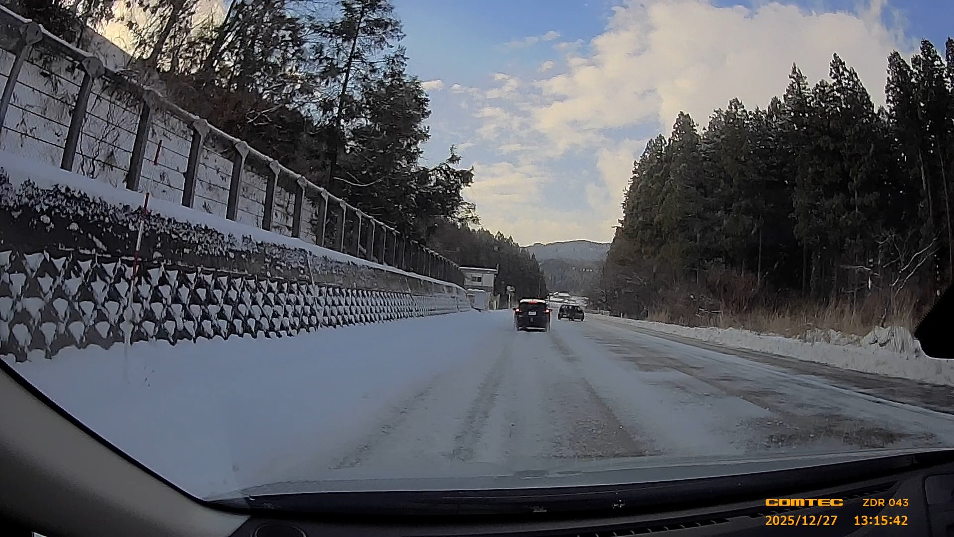 ここからはドラレコの映像のスクリーンキャプチャーです。ちなみに気温はずーっと氷点下0度近辺でした。