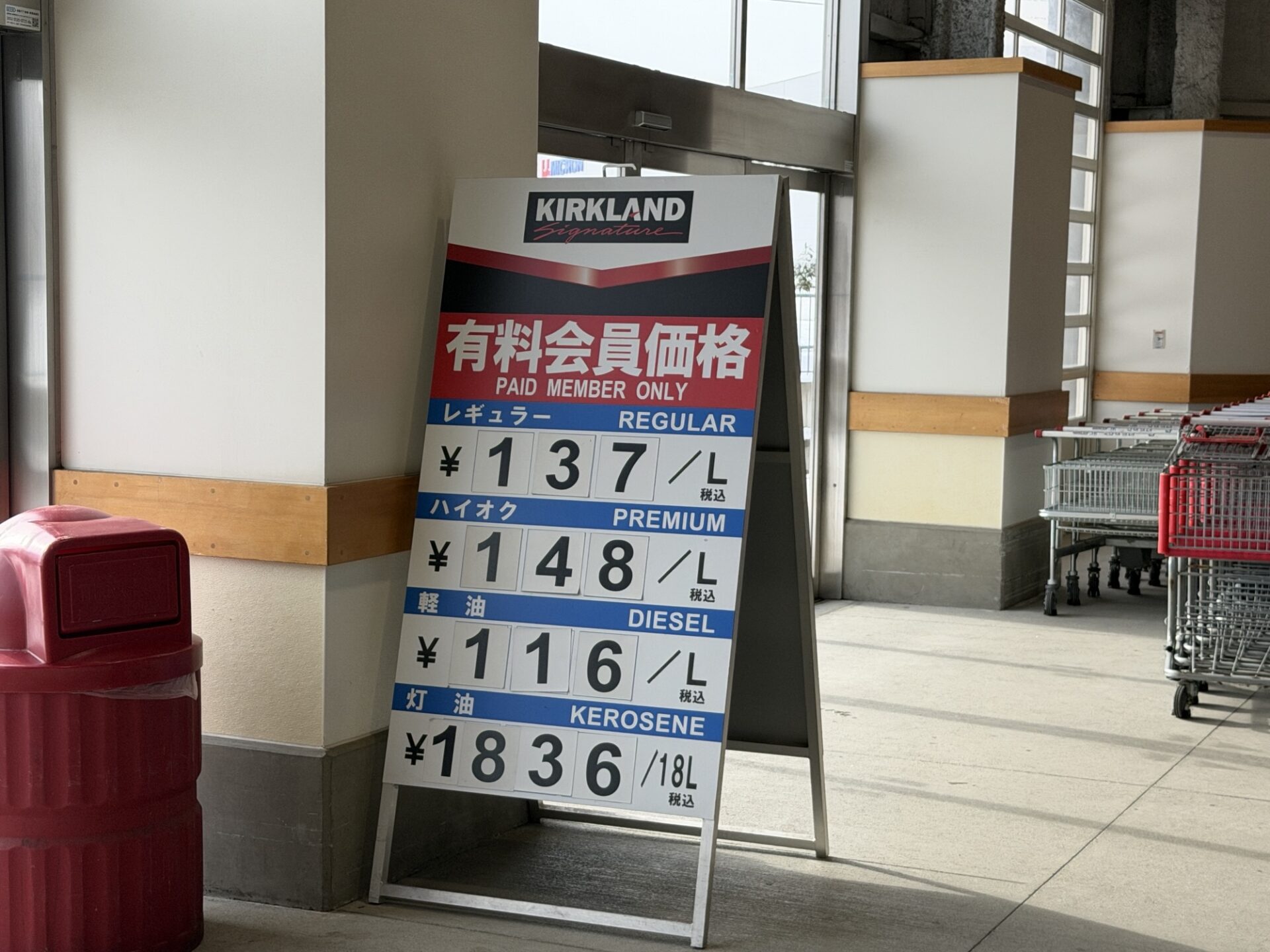 レギュラーとハイオクは新潟県での最安値レベルと同じぐらい、軽油はコストコの方がグンと安いです。灯油も家の周囲で入れるよりも1Lあたりで5円近く安いので、ポリタンク3つ分を給油してきました。あとはガソリンを満タンにして、1時間ほどかけてゆっくりと買い物します。