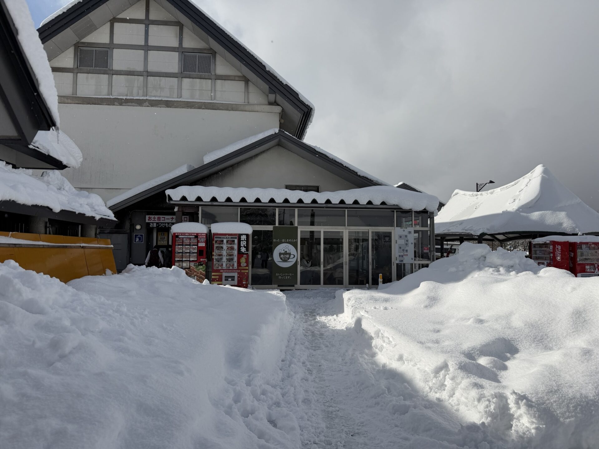 帰りも運転は「道の駅いいで」まで自分が運転し、その後はイガさんに交代します。小国街道は日中も雪が降り続けていましたが、除雪が完璧なので普通に走れます。ただ、道の駅はごらんの通りのドカ雪でした。今シーズン初の本格降雪だったようですが、1日にこれだけ積もると参っちゃいますね。