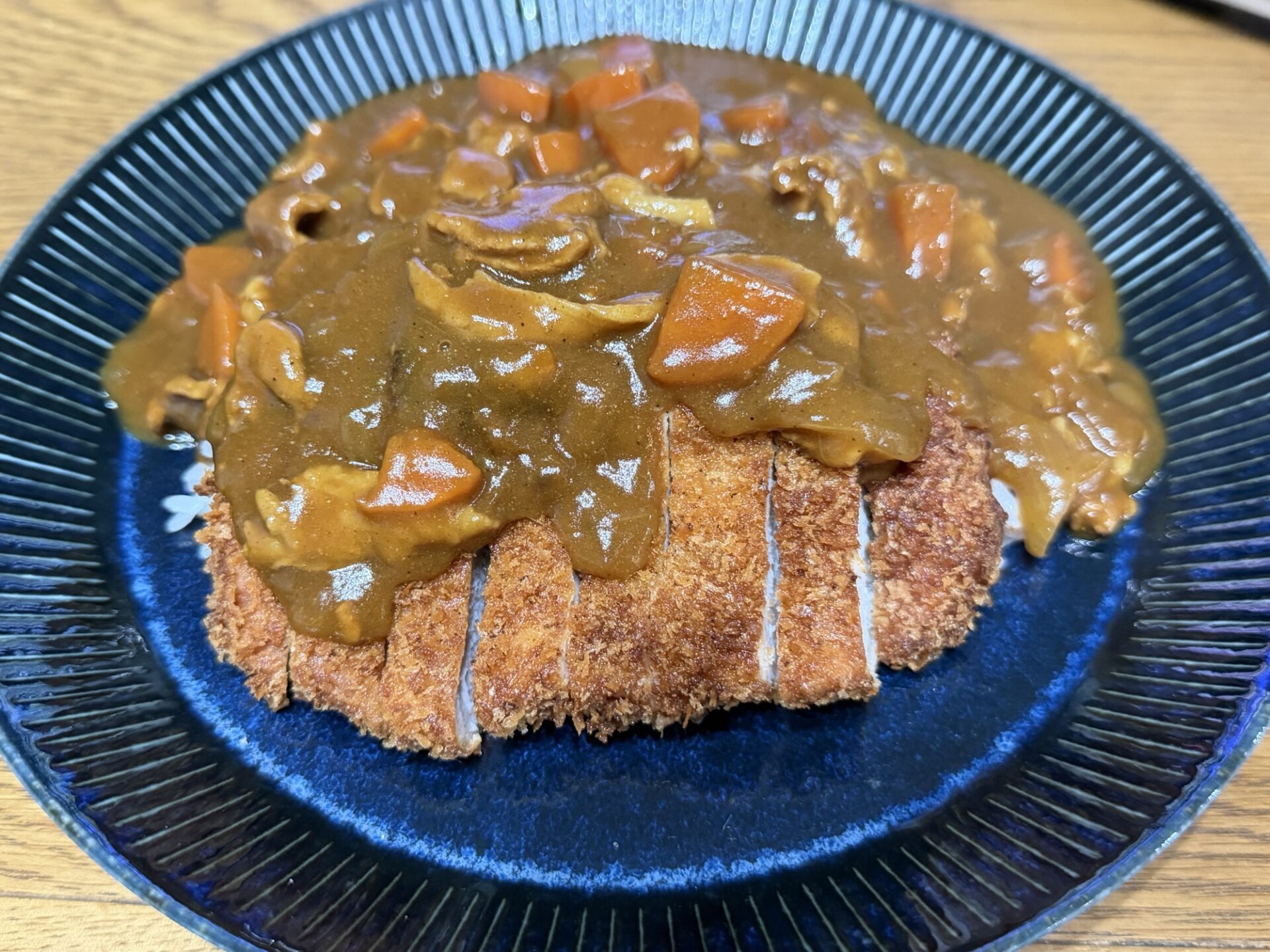 お昼にカレーを煮ておいたので、これまた冷蔵庫に残っていたトンカツ用のロース肉でカツを揚げました。コストコで売っているロース肉は脂身が少なくて、非常に柔らかくて美味しい。合わせてカツカレーを頂きました。