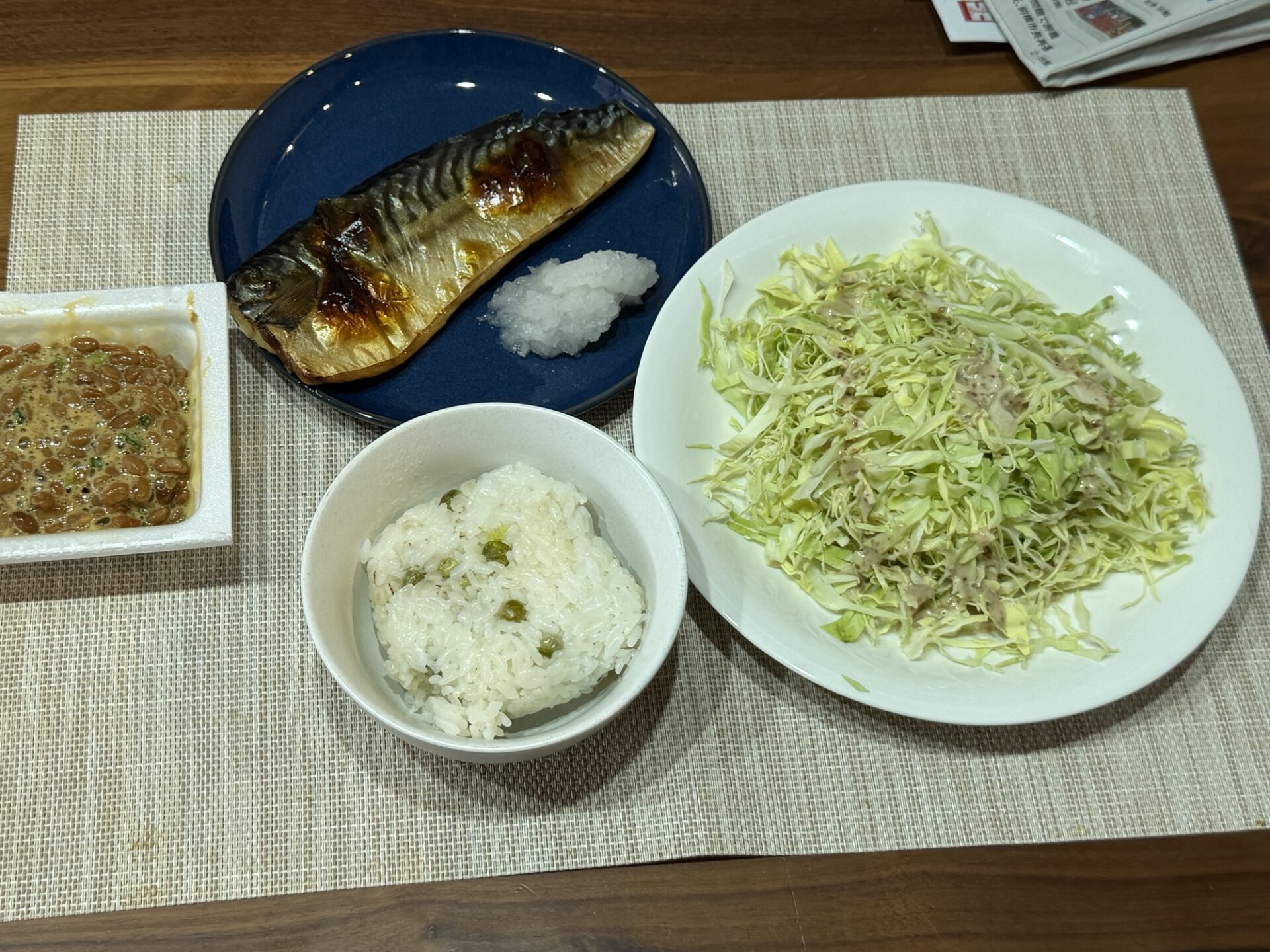 年末にコストコで買ってきた鯖を焼いて、大根おろしを添えていただきます。鯖は高騰の兆しがありますので、安価なうちにまとめ買いしたものを1枚ずつラップをして冷凍庫に保管しています。鮭も同様に備蓄しています。海苔の在庫がいっぱいあるので、焼鮭を具にしておにぎりでも作ろうかな。