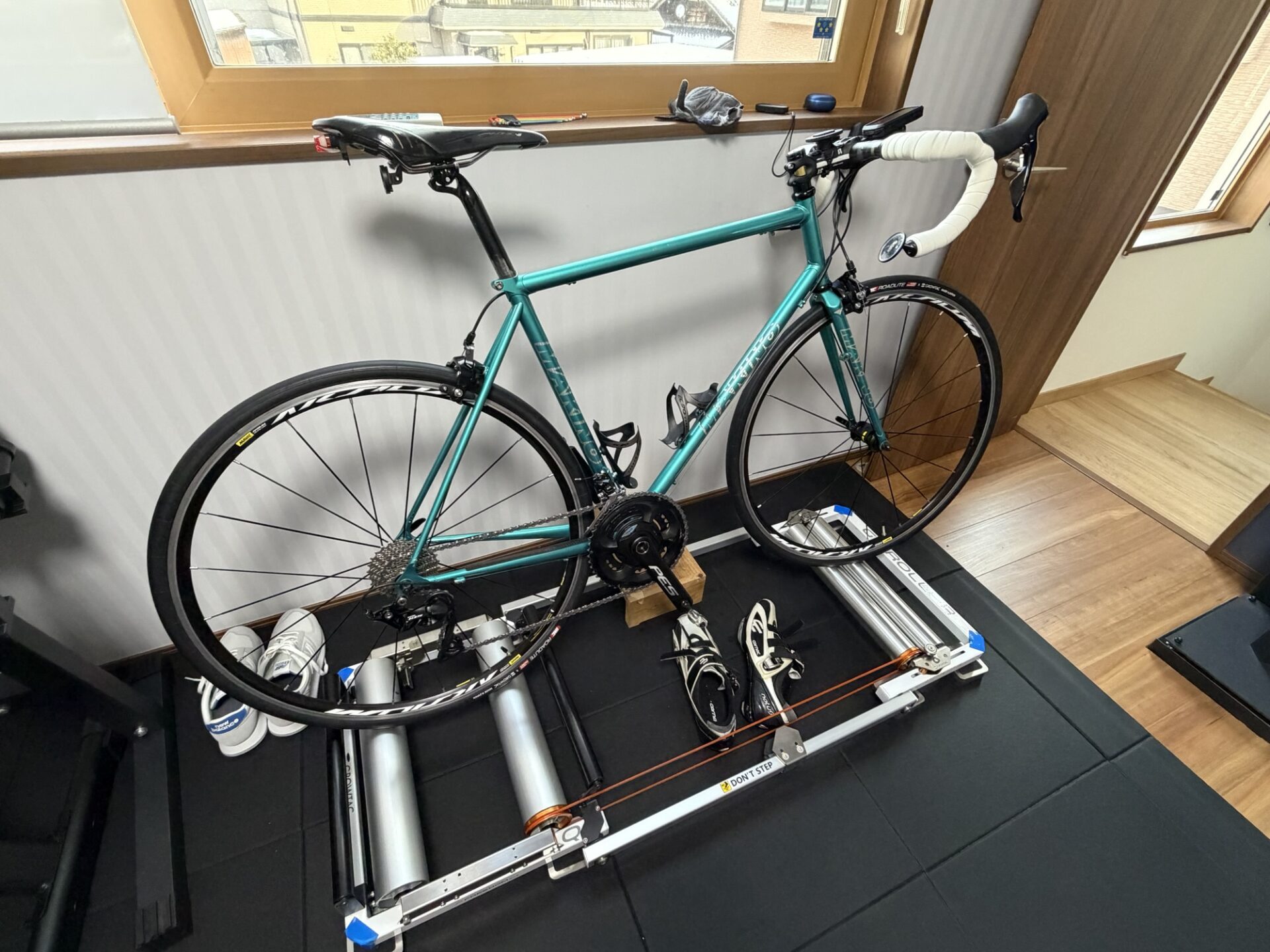 三本ローラーでは変速はあまりしないのですが、それでも11-34Tというワイドなギアでは室内トレーニングにやりにくさを感じていました。そこで、Yahooオクで105グレードの11-28のカセットを2500円で入手し、スマートローラーと三本ローラー用のホイールのカセットを同一にしました。