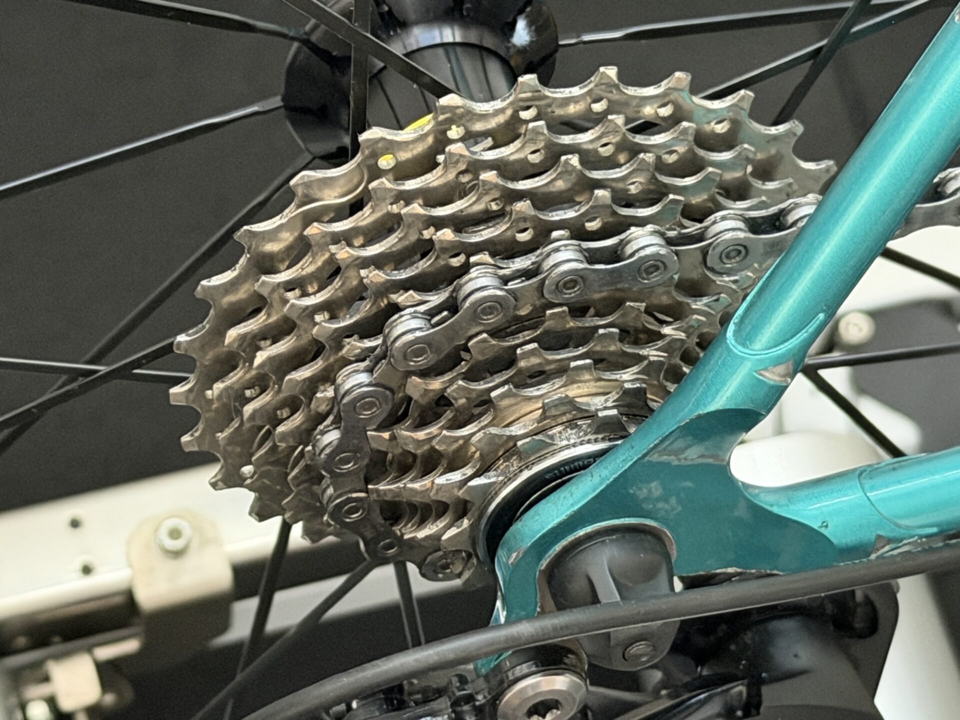 塗布してから1週間が経過して、トレーニングで4回ほど回しましたが、室内での利用ということもあってチェーンやカセットは全く汚れてません。なかなかよい感じなので、実走用のCervelo R3のチェーンを春先に交換する時に完全に脱脂して、このルブを塗布してみようと思ってます。