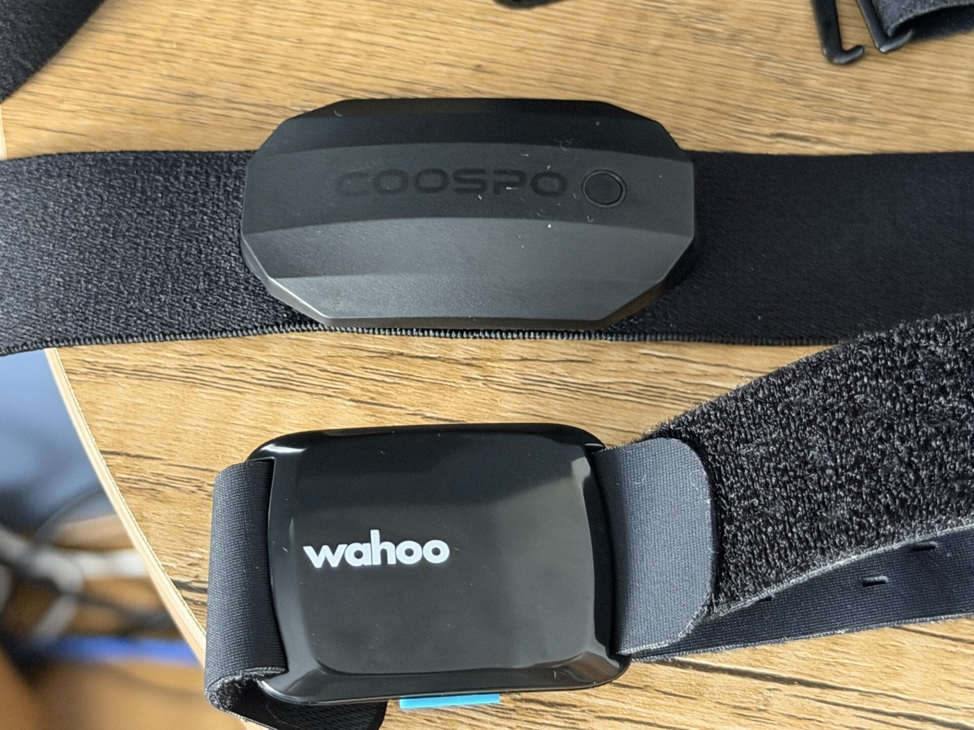 久しぶりに胸に巻くタイプの心拍計を買ってみました。CR2032電池で動くタイプで3500円ほどでした(写真の上のやつ)。腕に巻く光学式は服を着替えた後でも装着できる気楽さがあるので、今後も併用はしますが、家トレでは胸に巻くタイプを使おうと思ってます。