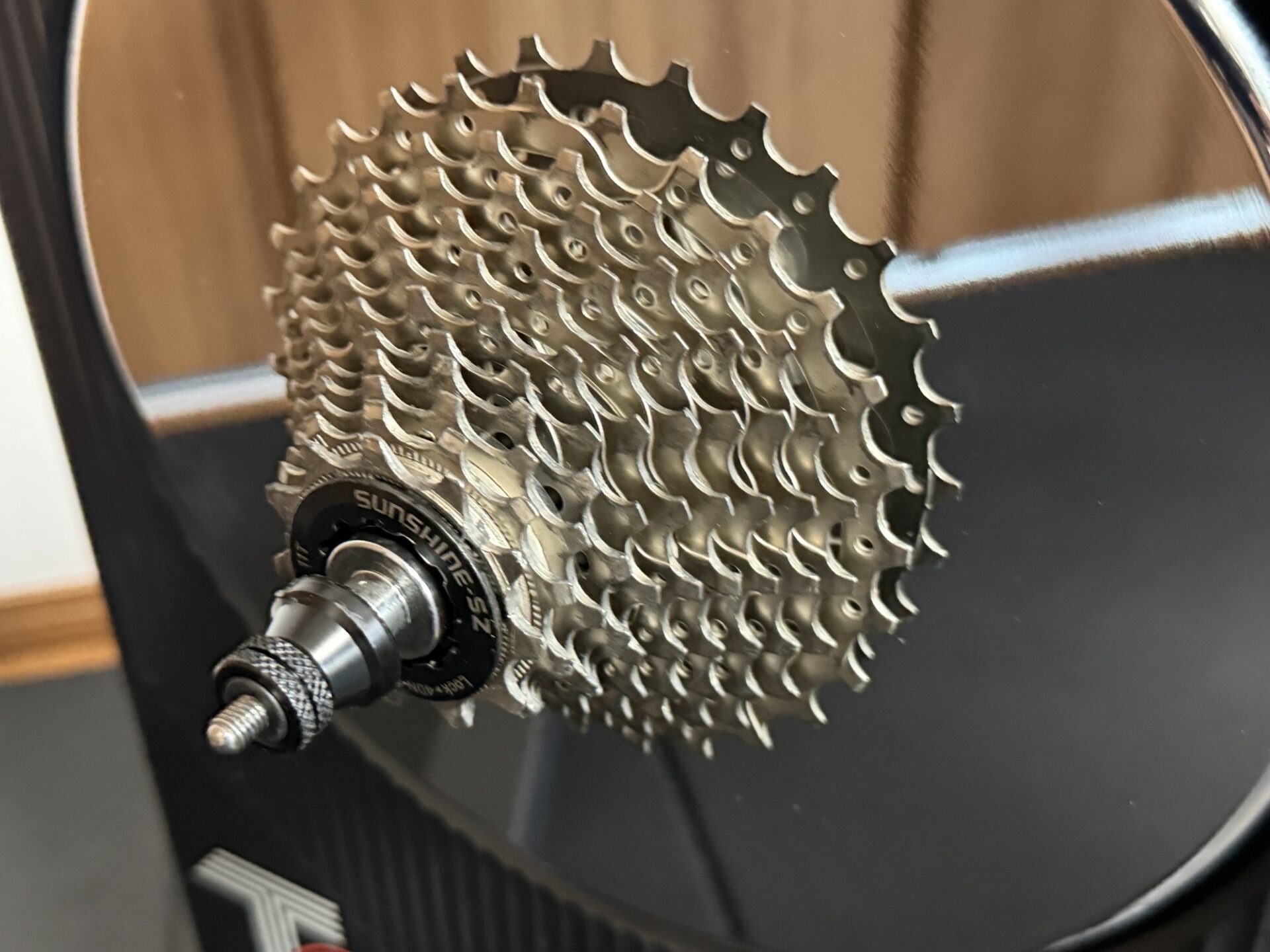 三本ローラーとスマートローラーでマキノ号を併用しているのですが、これまでマキノ号に履かせたホイールには11-34Tのカセットを取り付けていました。しかし、スマートローラーは11-28Tなので、この三本ローラー用のホイールを外して、スマートローラーに取り付けると変速の調整が必要なります。