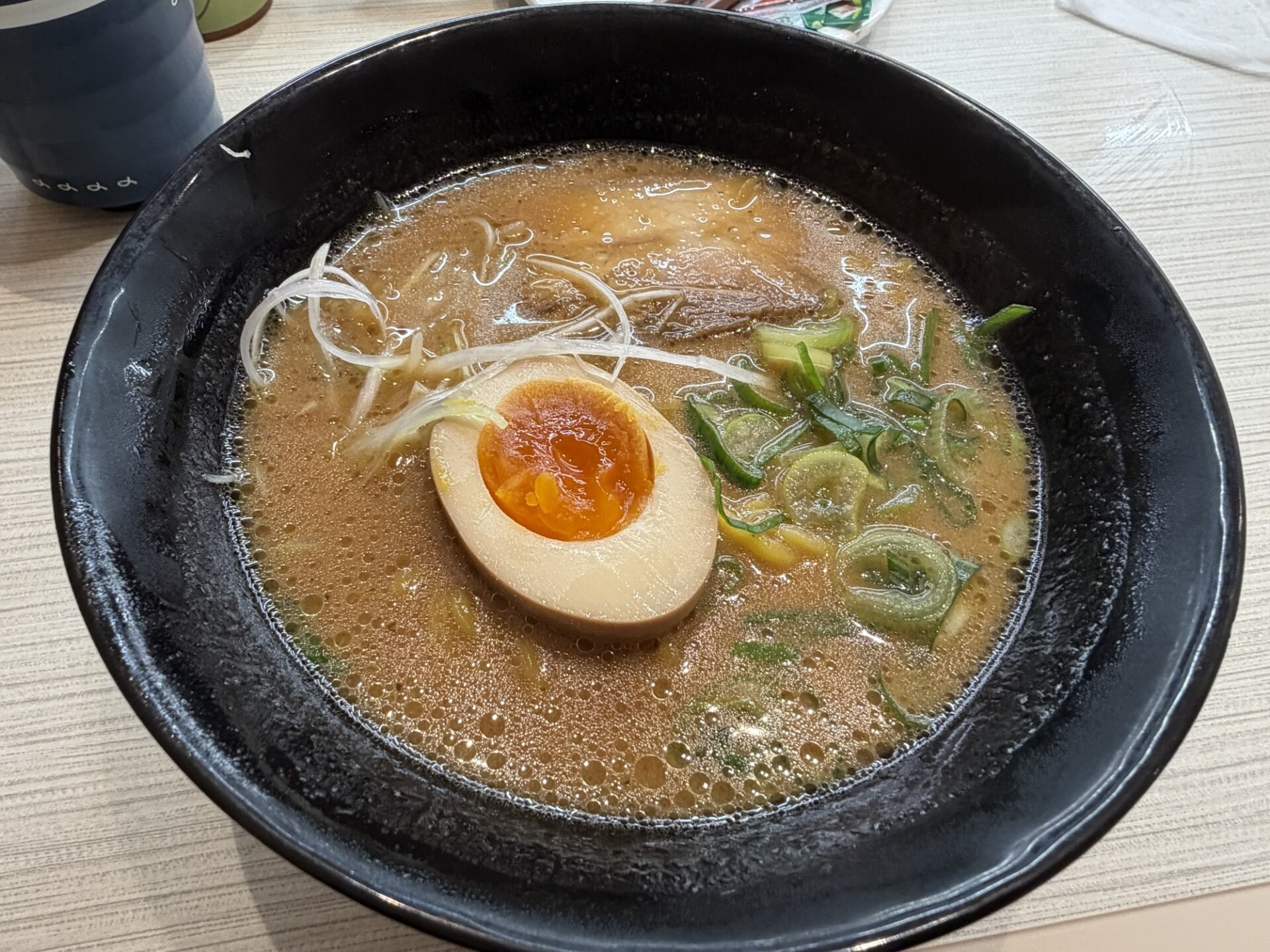 それは締めの期間限定の濃厚北海道味噌ラーメン(390円税抜)です。平日限定の80円引きのクーポンを使えるので、ちょっとだけラーメン食べたい欲を満たしに来ました。味的にはキンレイの冷凍ラーメンを更に美味しくした感じで、量は普通のラーメンの半分ほどです。味も量もかなりの満足感がありまして、お腹も完全にいっぱいになりました。