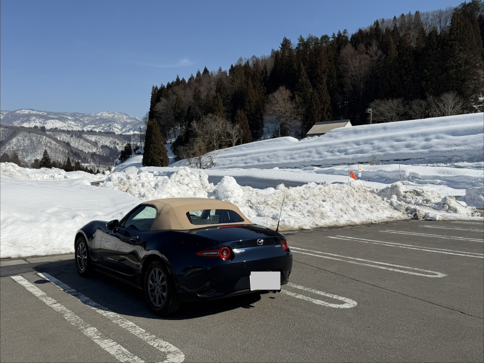 津南あたりからは絶好のドライブルートでして、オープンにしていると日光の暖かさが最高でした。空気が澄んでいるので、この時期の冬の晴れ間はオープンにして走るのに最高です。あまりにもロードスターに乗れてなかったので、久しぶりにドライブを楽しみました。今回は長野出身のこーへー君を乗せていたので、途中の道案内も万全です。