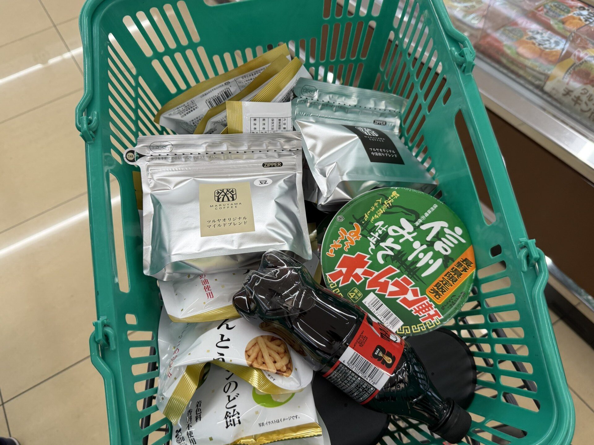 今回はツルヤオリジナルのナッツ、かりんとう、コーヒー豆、パンに塗るジャムなどを多数買いました。他にも途中で食べるためのパンや飲み物などを買います。主に近隣に配ったりするのに安価で喜ばれますし、ツルヤオリジナルのコーヒー豆もオシャレです。ナッツには乾燥チーズが入っているのが良いですよね。
