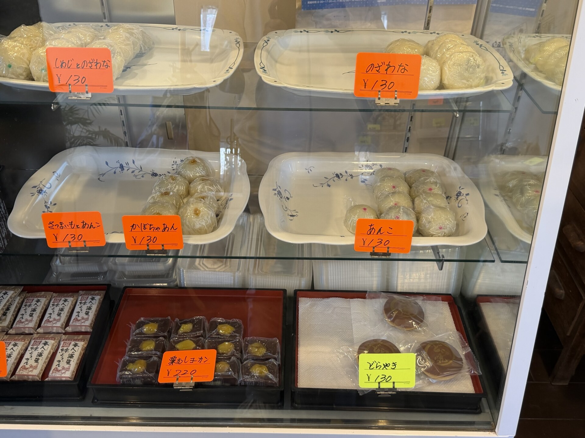 小さな見た目ですが、ずっしりとした重さでたっぷりと具の入ったおやきでした。こういうお店で買い物をするのが好きなので、見つけてくれたこーへー君に感謝です。自分は写真の4種類のおやきを2個ずつ買いました。お値段は非常にリーズナブルです。