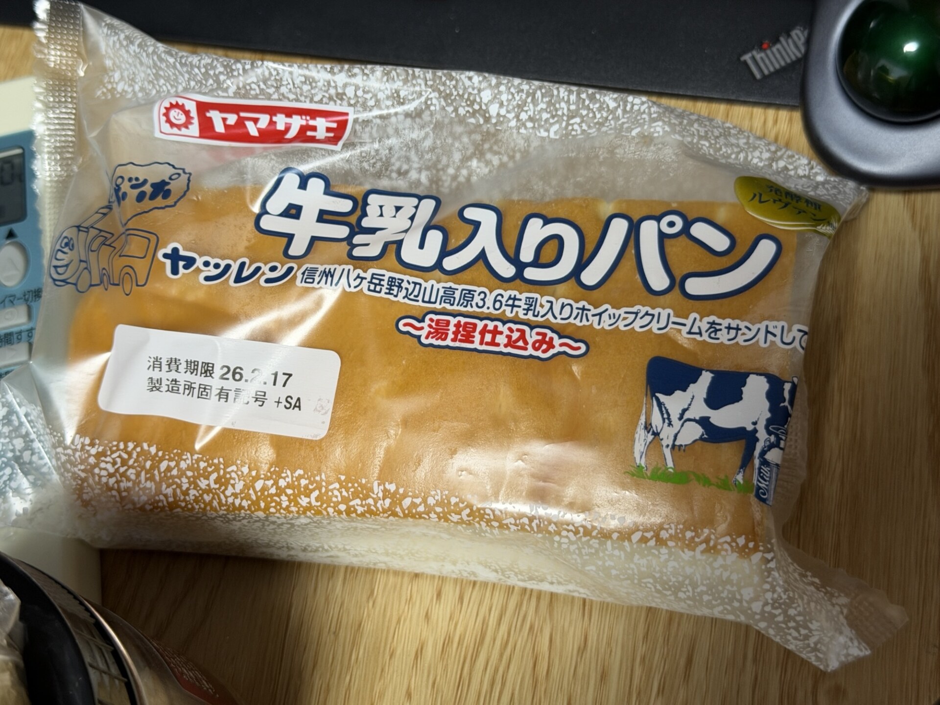 パッケージに書いてある「ヤツレン」という文字とSLの絵に見覚えがありまして、2013年に天城越え600を走った時に野辺山周辺のコンビニで、この絵が書いてあるアイスを買って食べたのです。その時の記事に写真が残ってましたが「アイスの味は普通」っていう感想と同じく、このパンも味は普通でしたが美味しかったです。