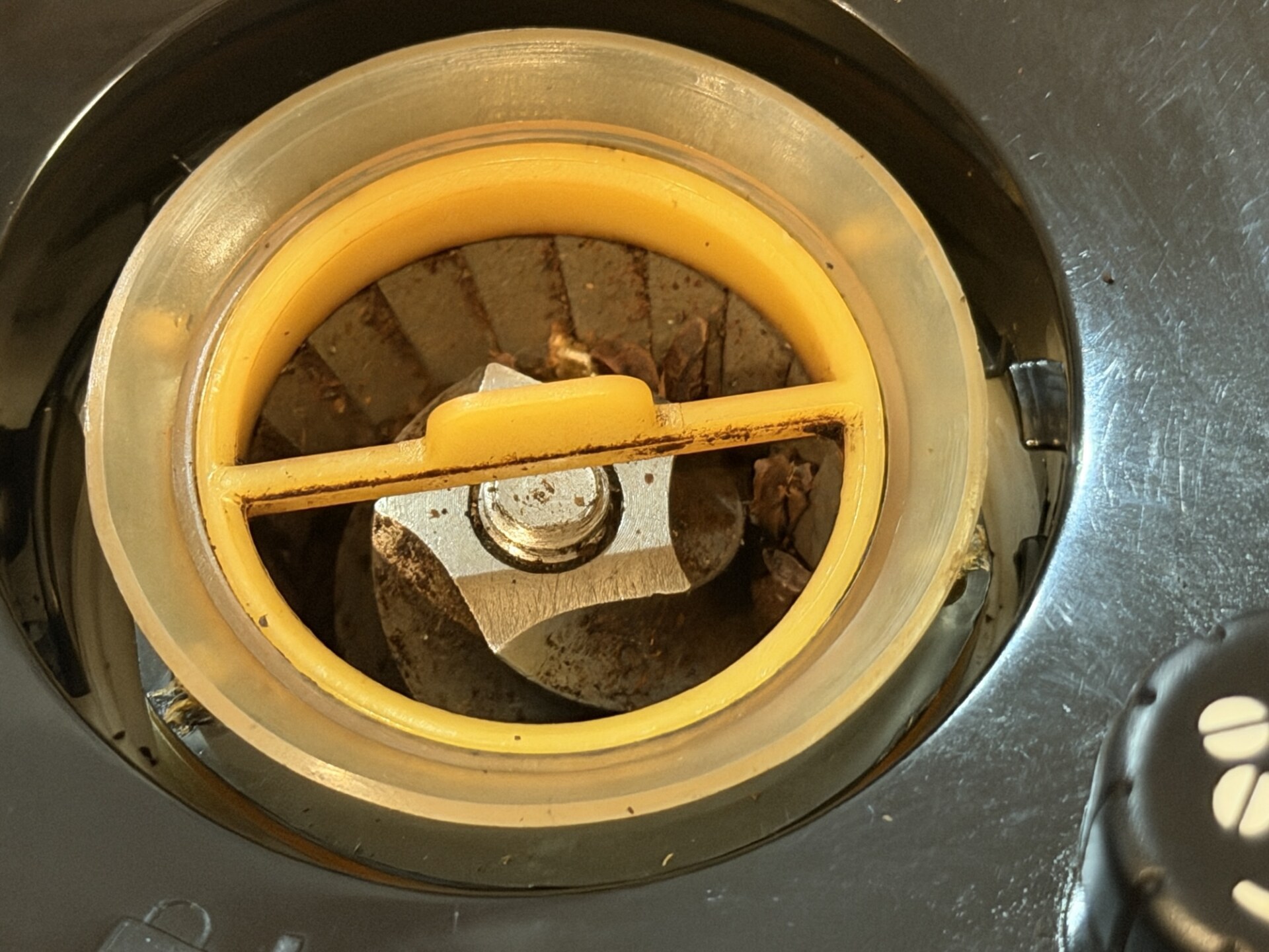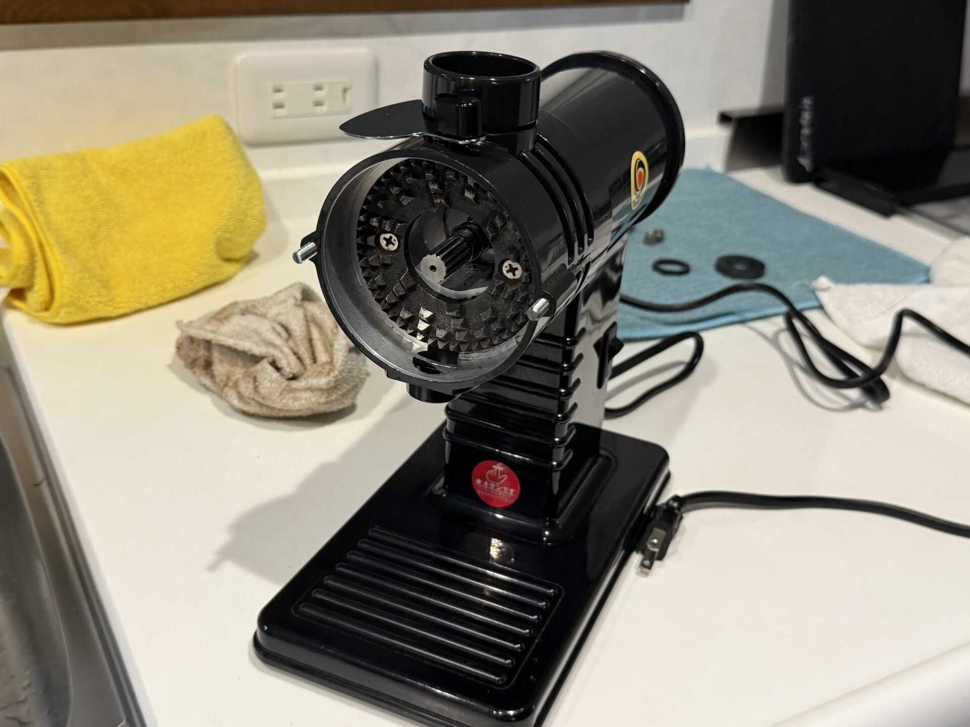 RCD-1は5年ほど使っていて、故障したわけではないのですが、最近はあまり使わなくなっていました。この機種の弱点はコーヒーオイルが多めに出る豆だと豆のホッパーの傾斜が弱くて、ミルに規定量の豆が入らないのです。これは表面が乾燥した豆では起きない現象です。
