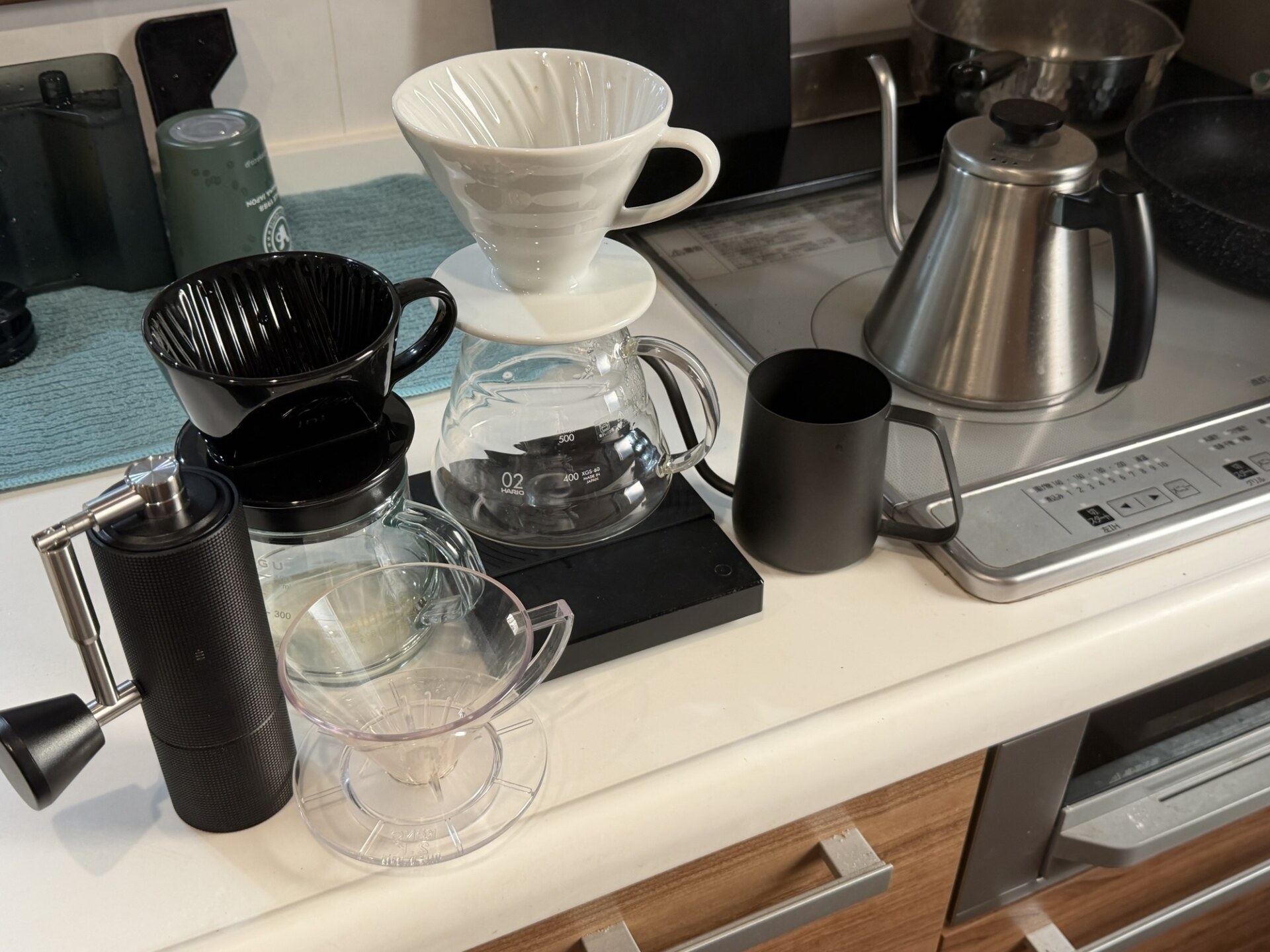 在宅勤務で家で美味しいコーヒーが欠かせないですし、仕事の息抜きにコーヒーを淹れるようになりました。味は全自動コーヒーメーカーで入れたものよりも、ハンドドリップの方が確実に美味しいのです。苦労した分のプラシーボ効果もあるのでしょうけど。