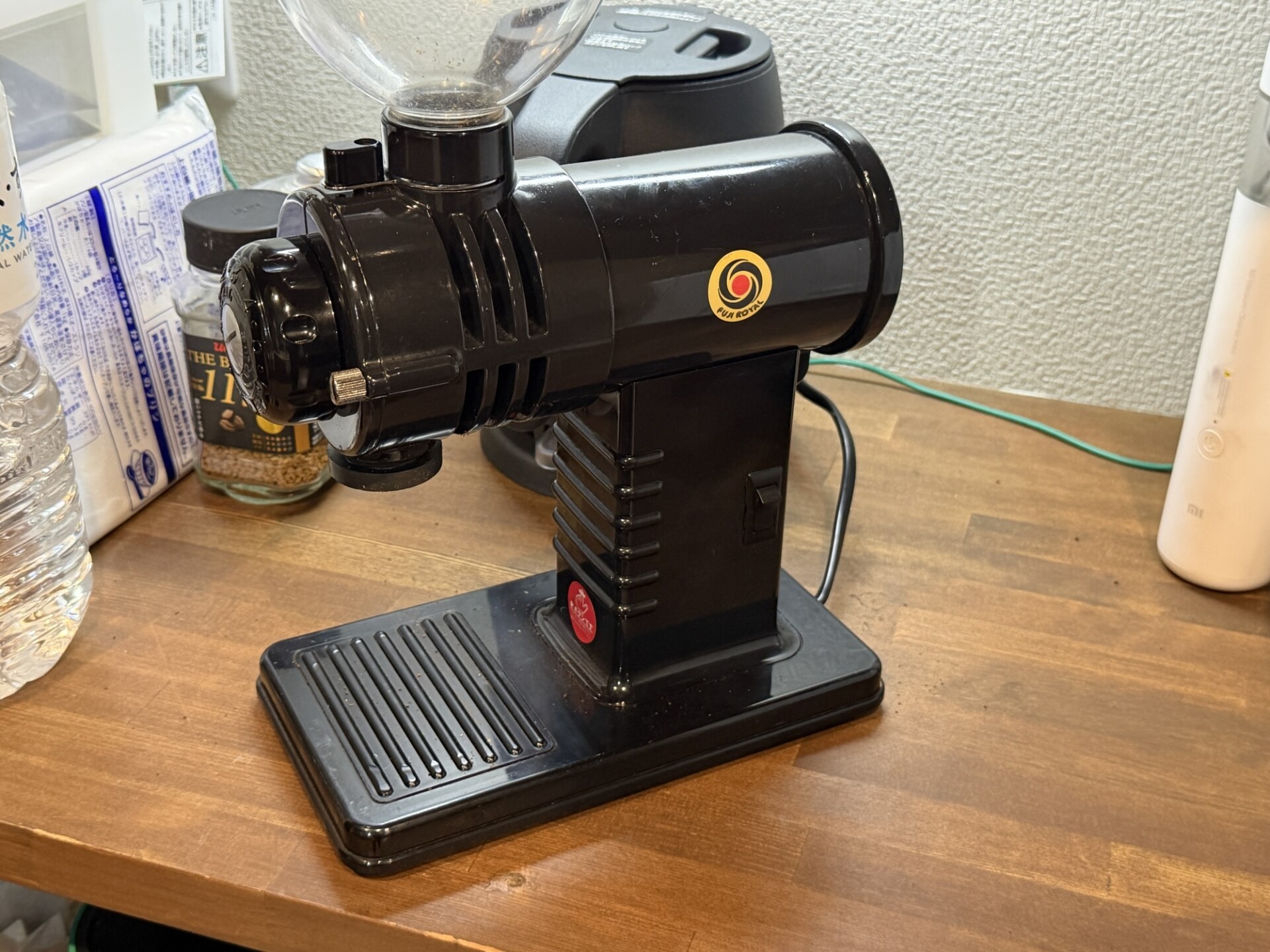 これまでレコルトの全自動コーヒーメーカーを置いていた場所に「みるっこ」が鎮座することとなりました。静電気対策としてアース線を取り付ける改造もいずれ実施しようと思ってますが、それが終わるまでは隣にハンディークリーナーで飛び散ったコーヒーの粉を吸い取る運用にします。