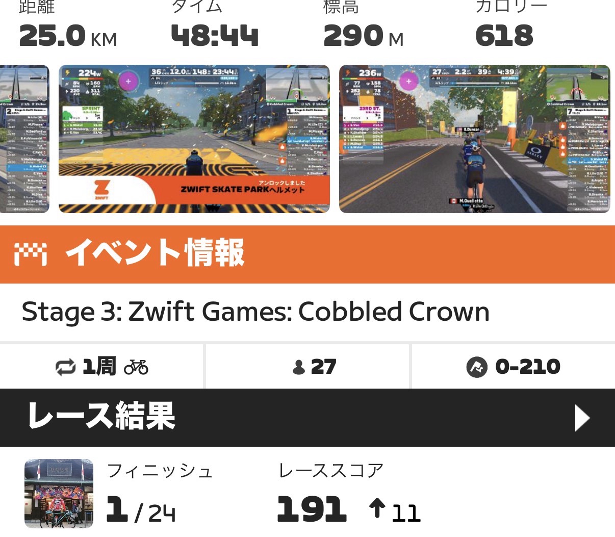 そんな訳でZwift GamesもTour de Zwiftと同じく、また全てのコースを完走することは叶わなそうです。