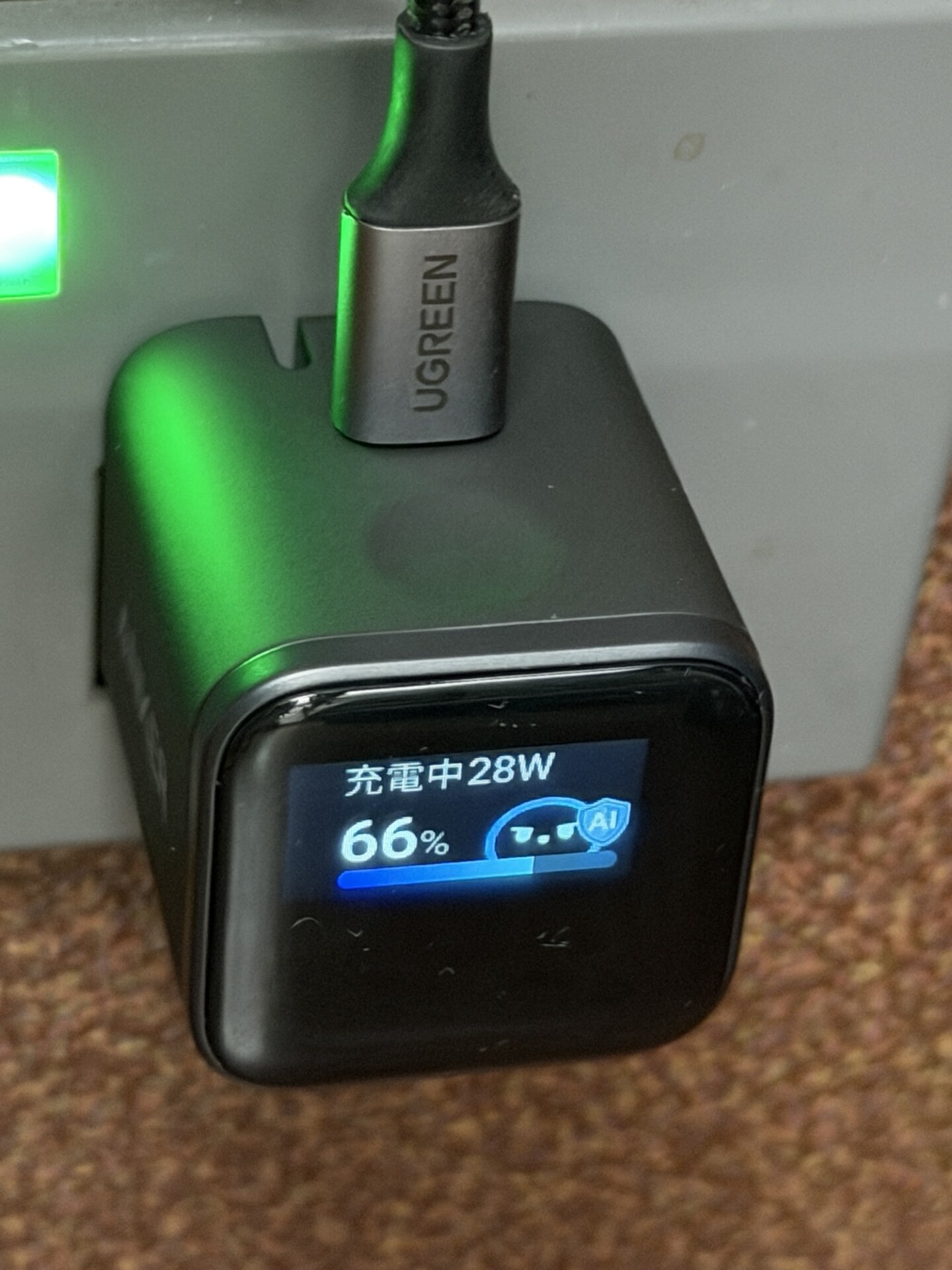 これは期待通りで移動中にUSB充電器が抜けることはありませんでした。新幹線移動時の定番になりそうです。