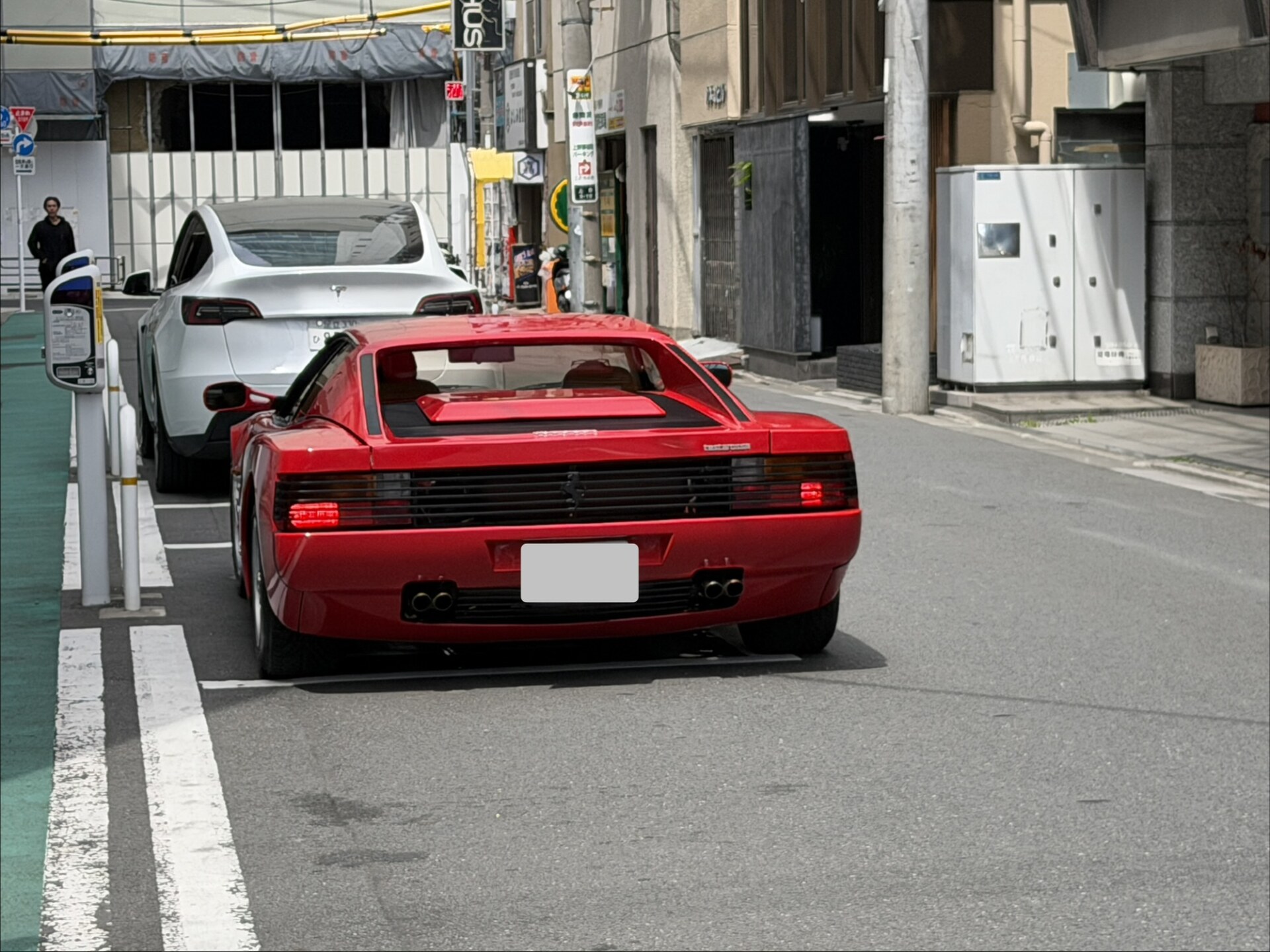 フラフラと歩いていたら、後ろからフェラーリのテスタロッサが路上パーキングメーターに駐車していくところが見れました。いやー、横幅がデカいのなんの。しかし、これだけ綺麗なテスタロッサを維持するのは大変でしょう。