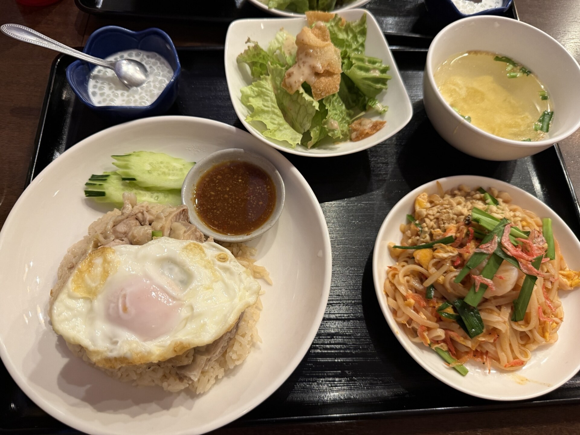 YUKI氏と合流してタイ料理のランチ。パッタイとカオマンガイが食べたい気分だったのですが、それぞれが少量組み合わせたセットがありました。カオマンガイ、ヘルシーで良いなぁ、と思うんですが、家で作ろうと試す気になれない料理です。