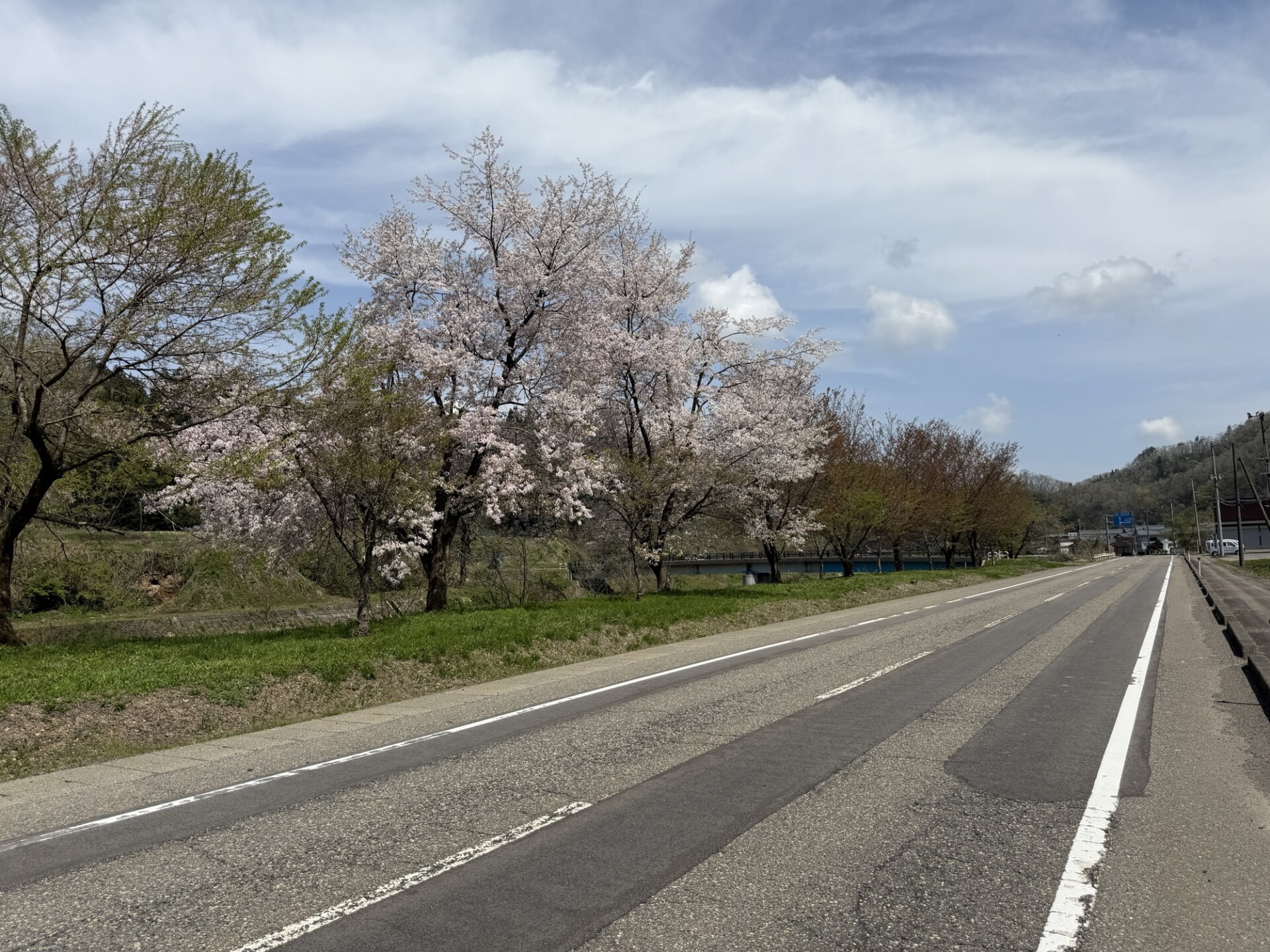 もうソメイヨシノは散ってますが、一部ではまだ咲いている箇所もありました。種類が違う桜が満開だったこともあり、快晴の中での気持ちの良いツーリングでした。長岡市に入ったあたりで気温がグングンと上がったので、日焼け止めを塗り直しましたが、まだ体が暑さに慣れてないので汗が思うように出ません。